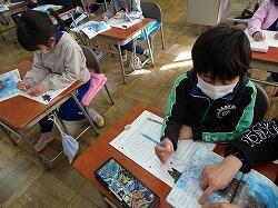 席に戻って、赤いお魚やスイミーの気持ちを書きました。