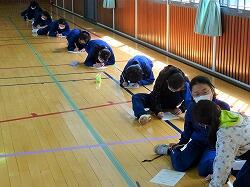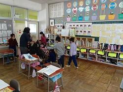 明日は「6年生送る会」です。もう6年生の卒業が近づいてきました。朝、1年生が明日の6年生送る会の座る場所を確認したり、6年生に送るメッセージ(たぶんそうだと思うのですが)の練習をしていました。