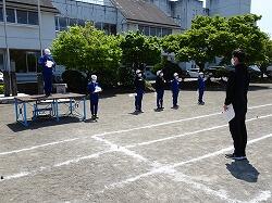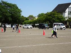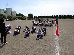 交通少年団結団式のあと「交通安全教室」が開かれました。実際に正しい歩き方や横断歩道のわたり方を学習します。1年生は初めての安全教室となります。