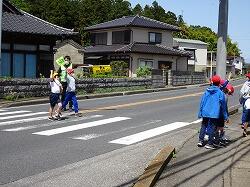 今日はしっかりと左右確認して、車が止まってくれたことを確認して渡ることができました。これからも決して飛び出したりせず、安全に渡ってほしいと思います。前の班が渡った後、次の班が左右確認しているうちに信号が点滅して、もう一回信号待ちなどというようなこともありましたが、それでも良いと思います。そのぐらい気をつけて登下校してほしいと思います。