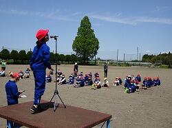 本番でもしっかり行うことができました。まず、開会のあと「交通少年団の歌」を歌いました。