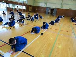 今は2種目を組み合わせて1種目となっていたり、ソフトボールではなく、ミサイルみたいな形のジャベリックスローになっていたり、昔とはずいぶん変わっていました。これからだんだん得意種目に絞って練習していくと思います。練習に参加している皆さん頑張ってください。最後に整理運動をやって終わりとなりました。
