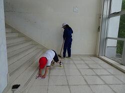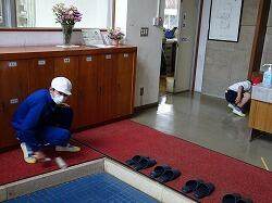 木曜日の昼休み、昇降口に美化委員が集まっていました。木曜日は、美化委員の活動日で、校内の美化活動を行っています。靴箱清掃を行っていました。ずっと1年間美化活動を続けているのは立派だと思います。