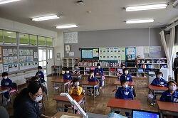 総合の時間に3年生が、6年生の青於発表の動画を鑑賞していました。