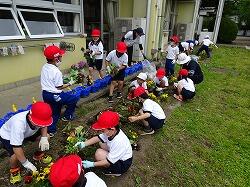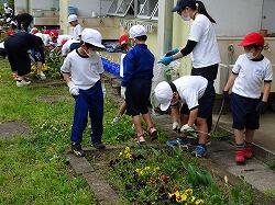 最初の写真は4年生の花壇でしたが、終わった後は下のようになりました。