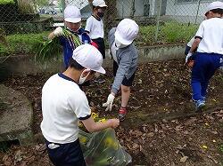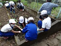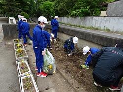 今日の清掃は金曜日なので(金曜日は除草作業となっています)、学年別に花壇の除草をしました。