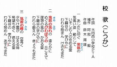 「この3つに共通する歌は何?」児童が気づいてくれたかどうかはズームだったのではっきりわからなかったのですが、この3つは校歌に出てくる山や川です。児童が校歌を歌うとき頭に風景が浮かぶようにと思い、紹介しました。
