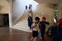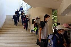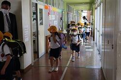 地震のあと停電となったことを想定して、担任のない先生がハンドマイク等を使って、避難指示を出しました。