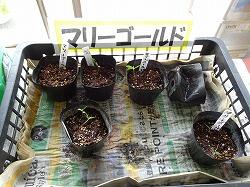 教室にはホウセンカやマリーゴールドが植えたカップがあります。芽が出てきたようです。