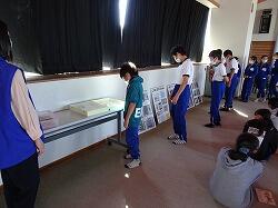 教室に戻ってそれぞれの作品を見ながら発表しています。先生も遠近法や表現の工夫について本人に確認しながら解説していました。