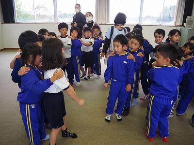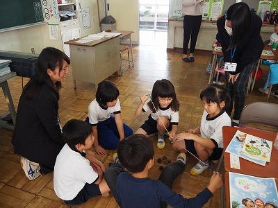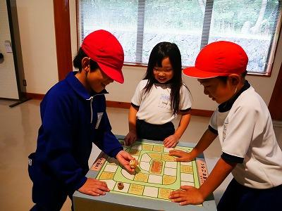 あいにくの雨になってしまいました。そのため、「イス取りゲーム」や「フルーツバスケット」などを、教室で楽しみました。(5年生は、生物多様性の学習です。)