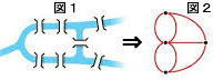 18世紀の初め、プロシアのケーニヒスベルク(現ロシアのカリーニングラード)を流れるプレーゲル川には、図1のように7つの橋がかかっていました。「同じ橋を2度渡らず、7つの橋をすべて渡って、元の場所にもどれるか」ということが議論になり、スイスの数学者オイラーが、そのような経路は存在しないことを証明しました。この問題を、図2のように数学化すると「一筆書き」ができるかどうか、という問題となります。「一筆書き」ができるための条件は、次の2つです。(1) すべての頂点に集まる辺の数が偶数の場合。(2) 集まる辺の数が奇数の頂点が2つと、それ以外の頂点に集まる辺の数が偶数の場合。(図2のことをグラフ、グラフの点を頂点、頂点を結ぶ線を辺とよぶ) 詳しい説明はしませんが、その2つしかできない理由を考えてみてください。