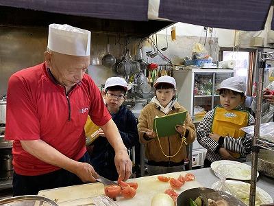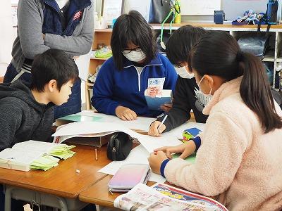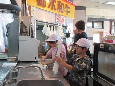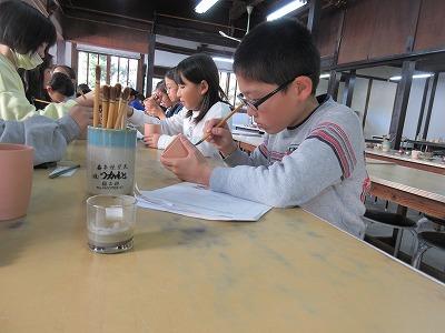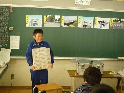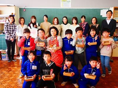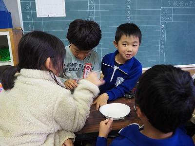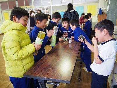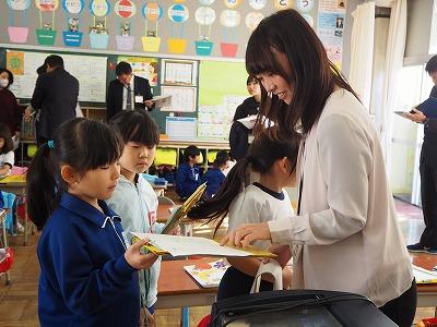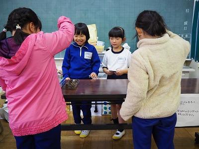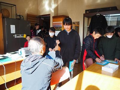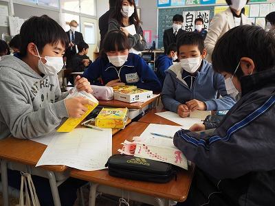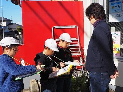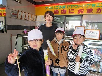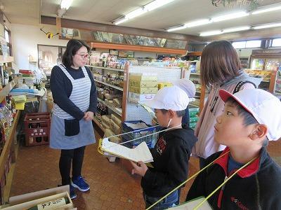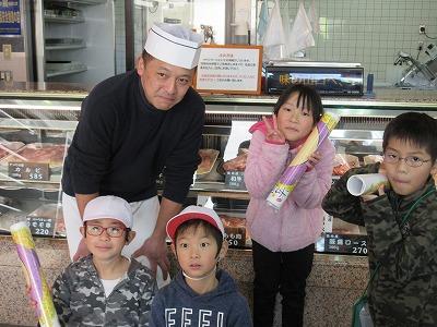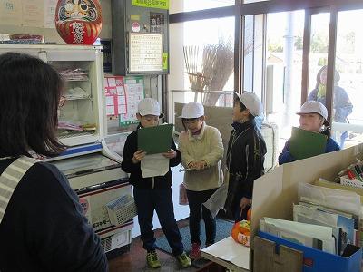 町たんけんでお世話になった、学区内にある店舗(飯塚商店、うな源別館、肉の山口、らいらい、桑原商店)に、オリジナルの写真入りの手作りカレンダーを届けに行きました。