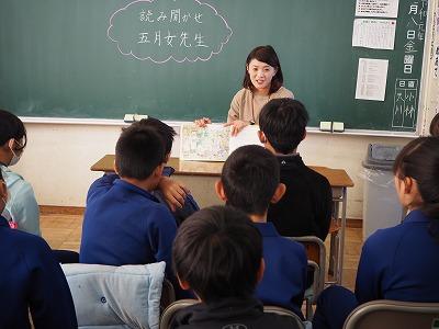 司書の五月女先生が、5年生の読み聞かせを行いました。