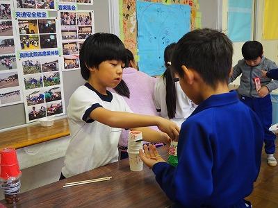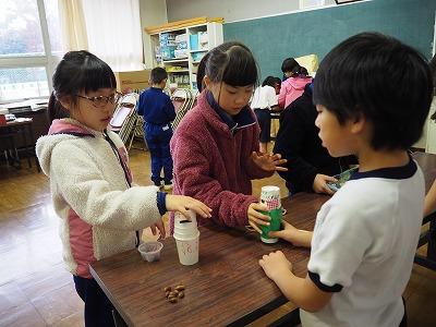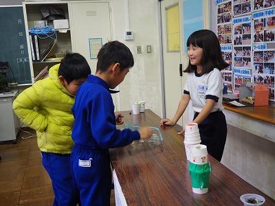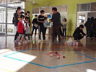 PTA厚生部主催の「親子レクリェーション」を行いました。体育館で「新聞紙ダーツ」、広場で「お手玉投げ」、図書室で「小豆つまみ」「ペットボトルキャップ積み」、生活科室で「ペットボトル輪投げ」、最後に校長室で「あっち向いてほい」をしました。とても楽しくできました。参加されました保護者の皆様、ご協力ありがとうございました。