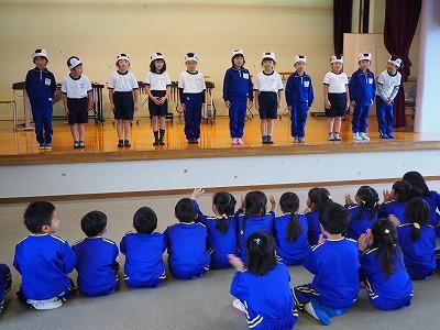 音楽集会の始めに、全員で歌う「さあ、はじめよう」の練習をしました。来週の金曜日(11/15)が音楽集会の本番です。今まで子どもたちが頑張ってきた練習の成果を発表しますので、ご覧いただきたいと思います。