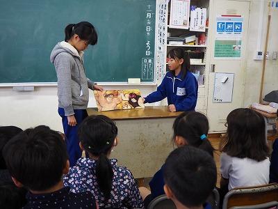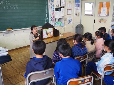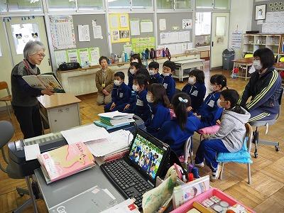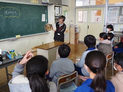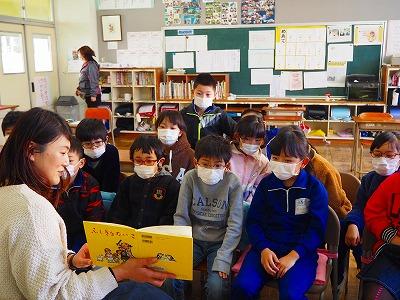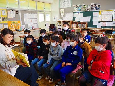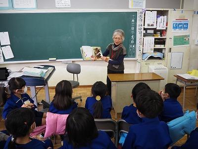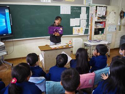 図書館司書の五月女先生が、2年生に読み聞かせをしました。「ふしぎなたいこ」