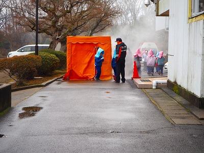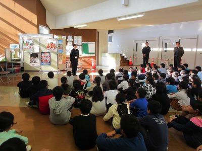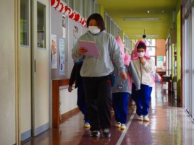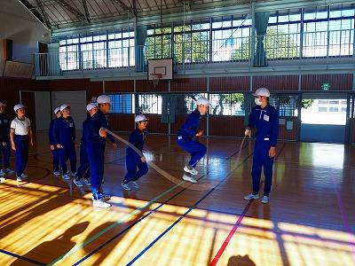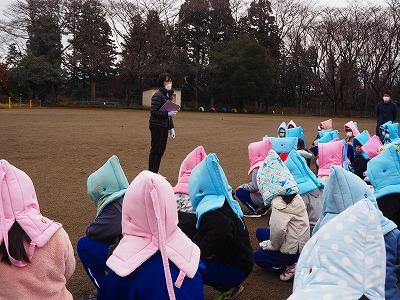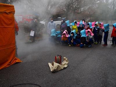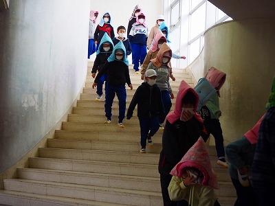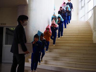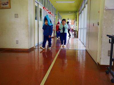今年5回目の避難訓練です。今日は、火災の避難訓練を行いました。子どもたちは、火災や地震で避難するときに、守らなければならない合い言葉「おかしもち」(おさない、かけない、しゃべらない、もどらない、ちかよらない)を頭に入れて、担任の先生の指示に従って、きちんと避難することができました。避難をしたあと、1・2・3年生は煙体験、4・5・6年生は脱出袋体験をしました。