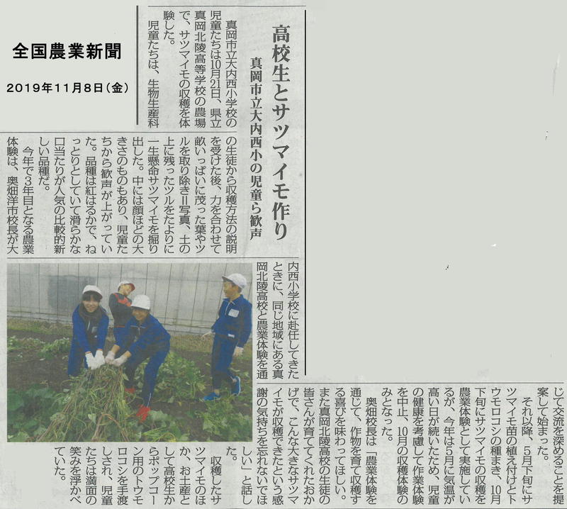 5月27日(月)にさつまいもやトウモロコシを植えに来る予定でしたが、最高気温が35℃ぐらいになる日が続き、作業するのが厳しいと判断して、北陵高校に来るのを中止しました。今年は、北陵高校の生徒の皆さんに植えてもらい、愛情を込めて育ててもらったおかげで大きなさつまいも(紅はるか)の収穫ができました。紅はるかは、ねっとりとしていてとても甘いさつまいもです。保護者の皆さんには、お忙しい中、収穫のお手伝いをいただきありがとうございました。