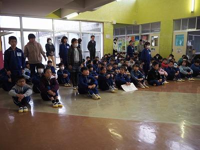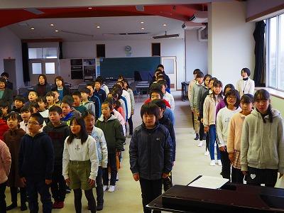 1年の中で、一番長い2学期(77日間)も、いよいよ今日で終わりです。2学期もたくさんの行事がありましたが、みなさんは、どの行事も、「さ・い・こ・う・の・こ」を目指して、一生懸命頑張ってくれたので、とても立派でした。特に、6年生は、下級生の面倒を見ながら、主体的によく頑張ってくれました。明日からの13日間の冬休みを充実した休みになるように、守ってほしいことを3つ話します。①交通安全や健康面の安全に気をつけて生活してください。②年末は、お正月の準備などで忙しくなるので、家の手伝いをしてください。③1月にテストがあるので、2学期までに習ったことを復習してください。1月8日(水)の始業式には、皆さんの元気な姿が見られることを楽しみにしています。