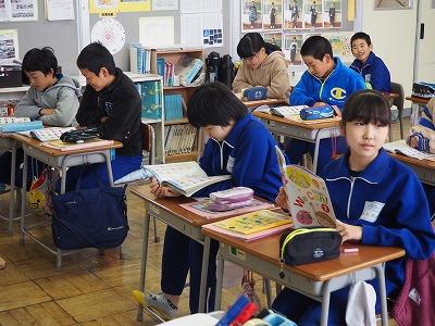 司書の五月女先生が、6年生の読み聞かせを行いました。