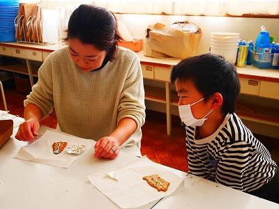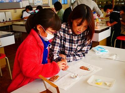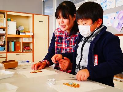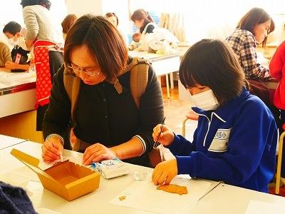 第5回家庭教育学級は、「親子で楽しくアイシングクッキー」です。アイシングとは、粉糖と卵白を混ぜて作ったクリームのことで、そのクリームを使って、クッキーの上にデザインをしたものをアイシングクッキーと言います。アイシングには油分が含まれていないため、空気に触れるとすぐに固まるので、持ち運びがとても便利です。