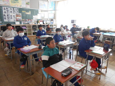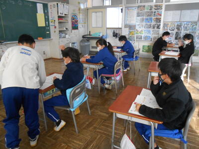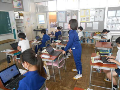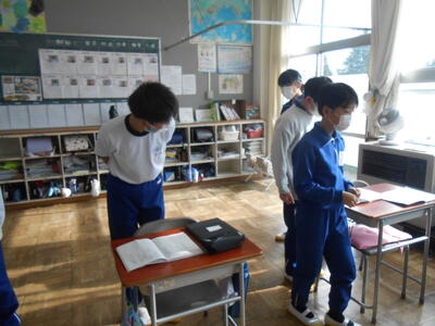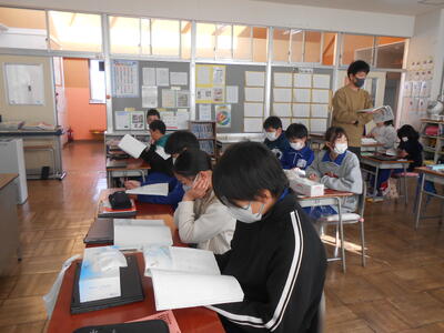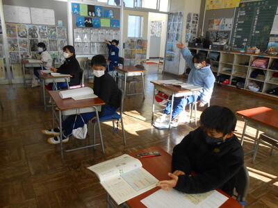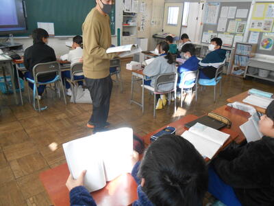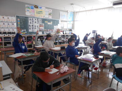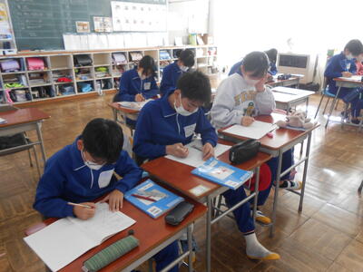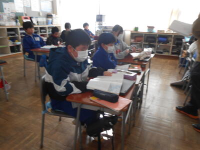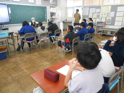 5年生は、国語の物語「大造じいさん」の読み取りの授業でした。叙述の表現に従ってどのような心情が読み取れるかみんなで考えていました。6年生はノートコンクールのために、友達のノートを見合い、優秀なノートを選んでいました。
