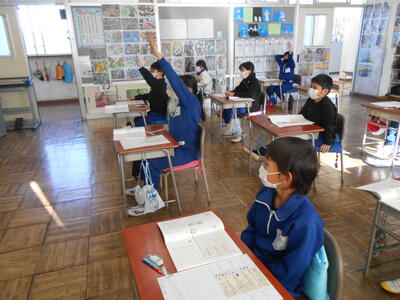 3年生は算数の授業でした。重さの学習で、はかりを使って重さを量るために、1メモリは何グラムをあらわすのか、確認をしていました。4年生は国語の授業で、熟語の学習でした。反対の意味をあらわす熟語ゆ同じ意味をあらわす熟語を探して確認していました。