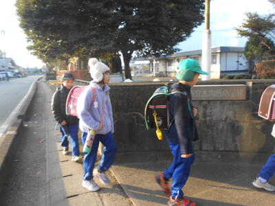 1年生がいない淋しい登校風景となりました。残念ながら今週の持久走大会につきましては中止とさせていただきました。楽しみにしていた児童もいると思いますが、何卒ご理解いただければと思います。