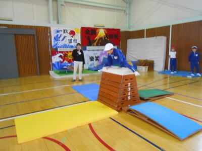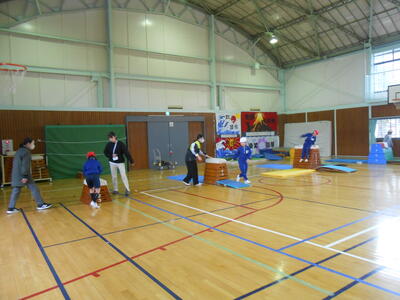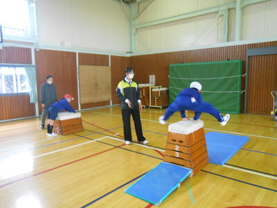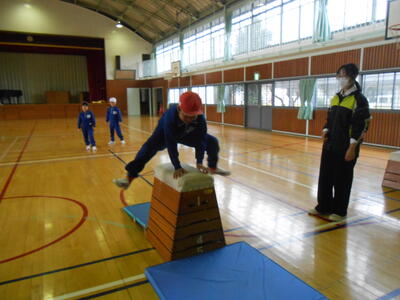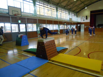 2年生は体育の学習で、跳び箱を行っていました。自分に合った高さに何度も挑戦していました。
