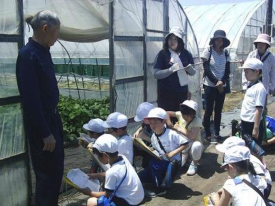 自分の住んでいる地域に愛着をもたせるために、町たんけんを行います。今回は、無量寿寺、宇大農園、西川いちご園、海老原メロン園に行き、働いている人の様子を観察したり、畑やハウスなど、作物を育てる場所の見学をしました。ご協力いただいた保護者の皆様、ありがとうございました。