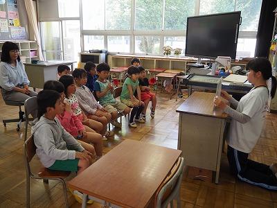 2年生が、1年生を案内するという形で「がっこうたんけん」を行いました。各教室をよく観察するために、特別な教室の入口には、「こうちょうしつには、いすがなんこあるでしょうか?」のように、2年生の作った問題が貼られており、それをクリアしながら各教室を回ります。また、保健室では、「養護の先生から、カットバンをもらう」などのミッションもありました。2年生のお兄さん、お姉さんが、とても大きく見えました。