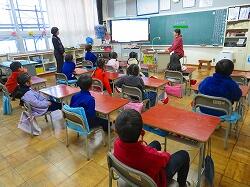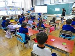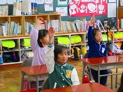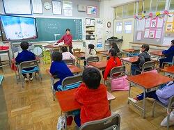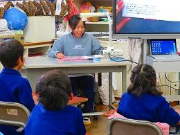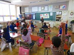 真岡市では、1年生から外国語活動を行い、英語に親しむことができるようにしています。