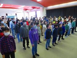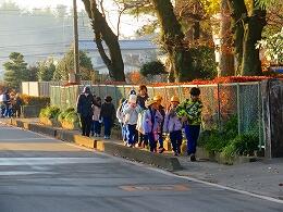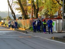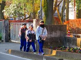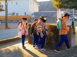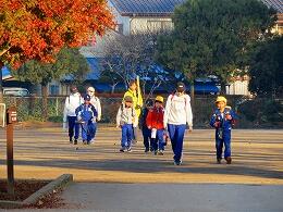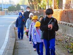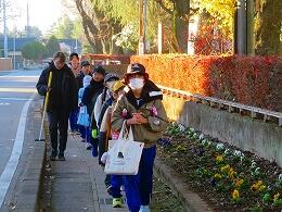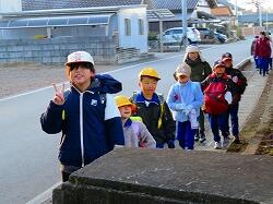 どの班も元気に挨拶をすることができました。一列にきれいに並んで歩いてくる班もたくさんあります。