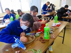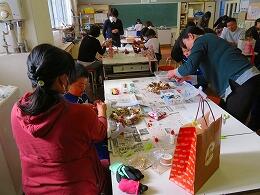 毛糸やボタン、綿やモールなど、様々な材料から想像を広げて、作品つくりに取り組んでいました。