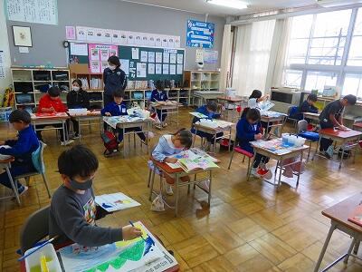それぞれが、自分の作品と向き合って取り組んでいました。友達が困っていると協力する姿も見られました。仲良しでいいですね。
