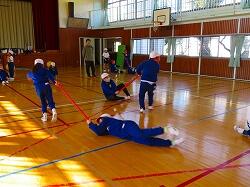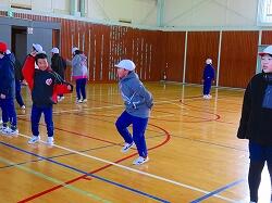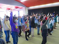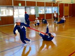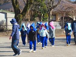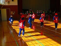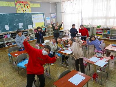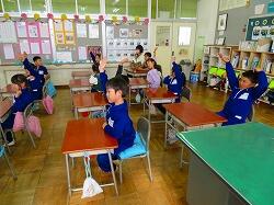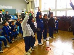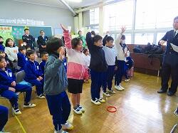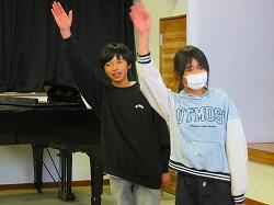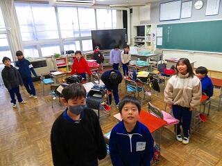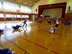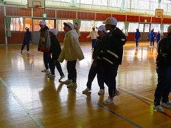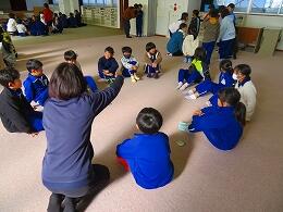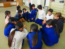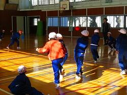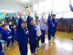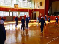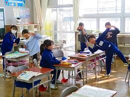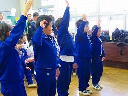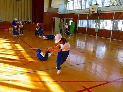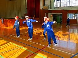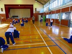 3年生4年生は、体育の体ほぐしの運動、表現運動で、音楽に合わせて体を動かす学習をしていました。