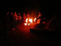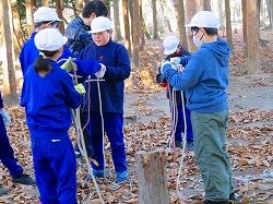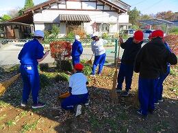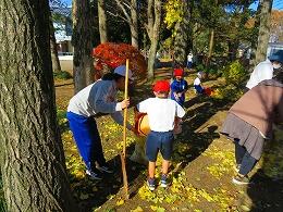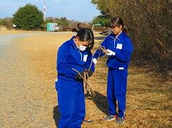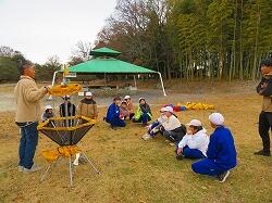 アウトドアクラブが、落ち葉焚きをして、先日収穫してきたサツマイモを焼き芋にして食べました。