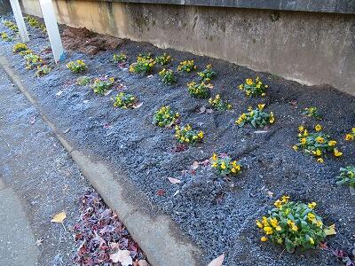 今朝の真岡市の最低気温は、0℃まで冷え込みました。その中でも、学校の花壇のパンジーはしっかりと咲いていました。