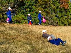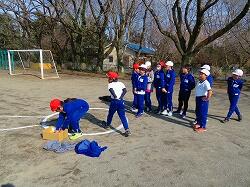 20m離れた友達のところに、ペットボトルを運び、リレー形式でつないでいきます。