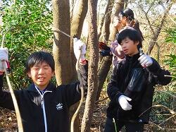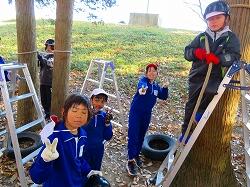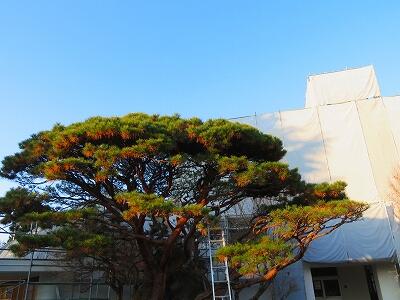 今、昇降口となりの真岡市古木名木に指定されているタギョウショウの手入れをしてもらっています。