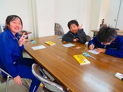 グループごとに課題となる「もしもの世界」について、どの世界について意見文を描くのか話し合いました。