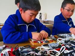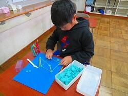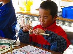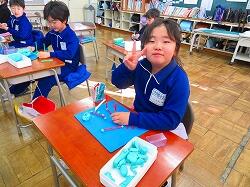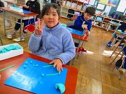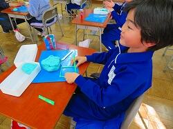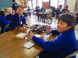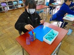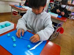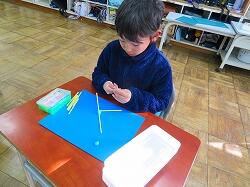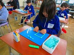 2年生は、「はこのつくり」の学習で、粘土と数え棒を使って、直方体と立方体づくりに挑戦していました。