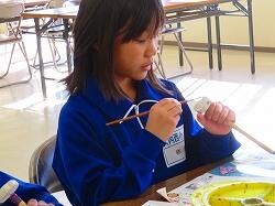 中には、初めてデンタルフロスをする子がおり、鏡を見ながら指導のもと、デンタルフロスを体験することができました。