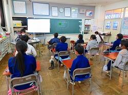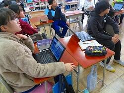 6年生は、外国語の学習で、自分の小学校の思い出を英語で伝えるためのスライドつくりを行っていました。