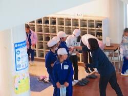 今朝は、地域のゴミ回収の日でした。子供たちが、地域の人にもあいさつする様子が見られました。