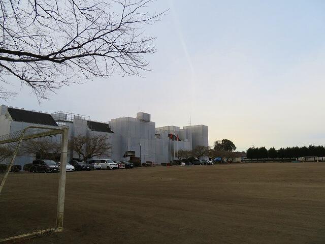 昨日の雨で、校舎北側の校庭がぬかるんでしまいました。