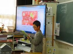 4年生は、国語で「自分なら、どちらを選ぶか」という学習で、「イチゴ祭り」のチラシはどちらがいいのか、理由を明らかにしながら、自分の考えをまとめていく学習をしていました。