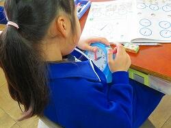 1年生は、算数で「なんじ なんふn」と時刻の学習をしていました。