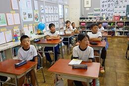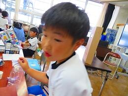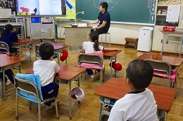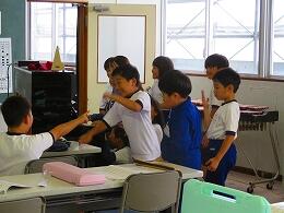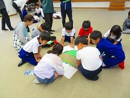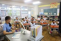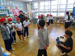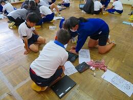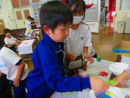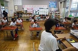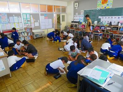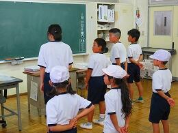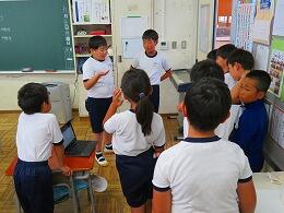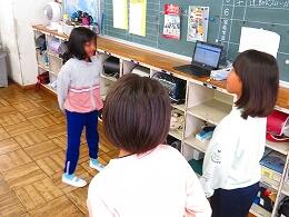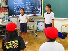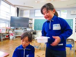 本校は、4年生になると係を行います。6年生や5年生が経験を生かして、教えている姿もありました。
